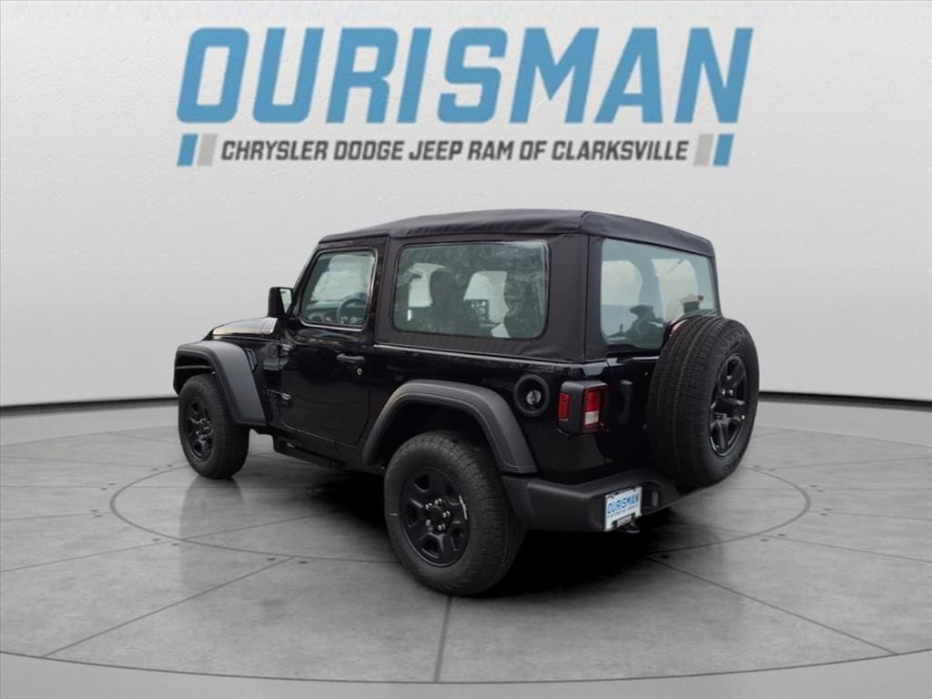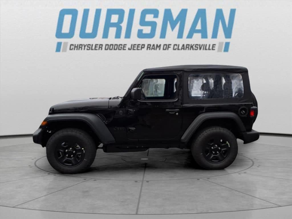 Quick Order Package 22B Sport, 12.3" Touchscreen Display, 3.45 Overall Top Gear Ratio, 4-Wheel Disc Brakes, 4G LTE Wi-Fi Hot Spot, 8 Speakers, ABS brakes, Air Conditioning, AM/FM radio: SiriusXM with 360L, Apple CarPlay, Apple CarPlay/Android Auto, Aux Battery, Brake assist, Cloth Low-Back Bucket Seats, Compass, Connectivity - US/Canada, Delay-off headlights, Driver door bin, Driver vanity mirror, Dual front impact airbags, Dual front side impact airbags, Electronic Stability Control, For More Info, Call 800-643-2112, Front anti-roll bar, Front Bucket Seats, Front Center Armrest w/Storage, Front fog lights, Front reading lights, Google Android Auto, Illuminated entry, Integrated Center Stack Radio, Integrated roll-over protection, Jeep Trail Rated Kit, Low tire pressure warning, MOPAR All-Weather Floor Mats, Non-Lock Fuel Cap Without Discriminator, Normal Duty Suspension, Occupant sensing airbag, Outside temperature display, Overhead airbag, Panic alarm, ParkView Rear Back-Up Camera, Passenger door bin, Passenger vanity mirror, Power steering, Power windows, Radio data system, Radio: Uconnect 5 with 12.3" Display, Rear anti-roll bar, Rear reading lights, Remote keyless entry, SiriusXM Radio Service, SiriusXM with 360L, Speed control, Steering wheel mounted audio controls, Stop-Start Dual Battery System, Tachometer, Telescoping steering wheel, Tilt steering wheel, Traction control, Trip computer, Variably intermittent wipers, and Wheels: 17" x 7.5" Black Steel Styled.
