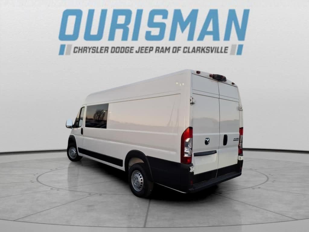 Convenience Group (Exterior Mirrors w/Heating Element, Exterior Mirrors w/Supplemental Signals, Front Fog Lamps, Power Adjust Mirrors, Power Folding/Heated Mirrors, Power-Adjustable Convex Aux Mirrors, Power-Folding Mirrors, and Rear Cargo LED Lamp), Crew Van Package (Driver Side 2nd Row Fixed Window and MOPAR Crew Van Kit), Quick Order Package 22B Tradesman w/Pass Seat (4-Way Manual Adjust Front Passenger Seat and Passenger Bucket Seat), Safety Group (Blind Spot & Cross Path Detection, Digital Rearview Mirror w/Autodim, Intelligent Speed Assist (ISA), Lane Departure Warning Plus, and ParkSense Front/Rear Park Assist System), 4 Speakers, 4-Wheel Disc Brakes, 4.08 Axle Ratio, 4G LTE Wi-Fi Hotspot, ABS brakes, Adaptive Cruise Control w/Stop & Go, Air Conditioning, AM/FM radio: SiriusXM, Apple CarPlay, Apple CarPlay/Android Auto, Black/Gray Seats, Bodyside moldings, Brake assist, Cloth Bucket Seats, Connectivity - US/Canada, Driver door bin, Driver Seat Armrest, Driver's Seat Mounted Armrest, Electronic Stability Control, For Details, Visit DriveUconnect.com, For More Info, Call 800-643-2112, Front anti-roll bar, Front Bucket Seats, Front License Plate Bracket, Front reading lights, Front wheel independent suspension, Global Telematics Box Module (TBM), Google Android Auto, GPS Antenna Input, Heavy Duty Suspension, Illuminated entry, Low tire pressure warning, Manufacturer's Statement of Origin, Outside temperature display, Overhead airbag, Overhead console, ParkView Rear Back-Up Camera, Passenger door bin, Passenger Double Seat, Power steering, Power windows, Radio: Uconnect 5 w/7" Display, Rear anti-roll bar, Remote keyless entry, SiriusXM Radio Service, Steering wheel mounted audio controls, Tachometer, Telescoping steering wheel, Traction control, Trip computer, Turn signal indicator mirrors, Variably intermittent wipers, Wheel Center Cap, and Wheels: 16" x 6.0" SteeL.